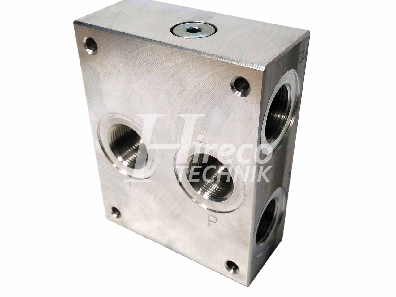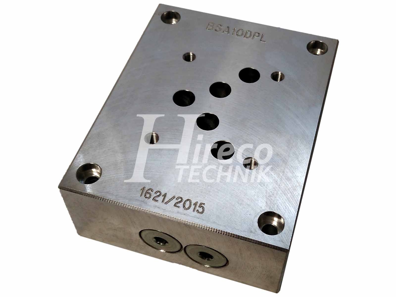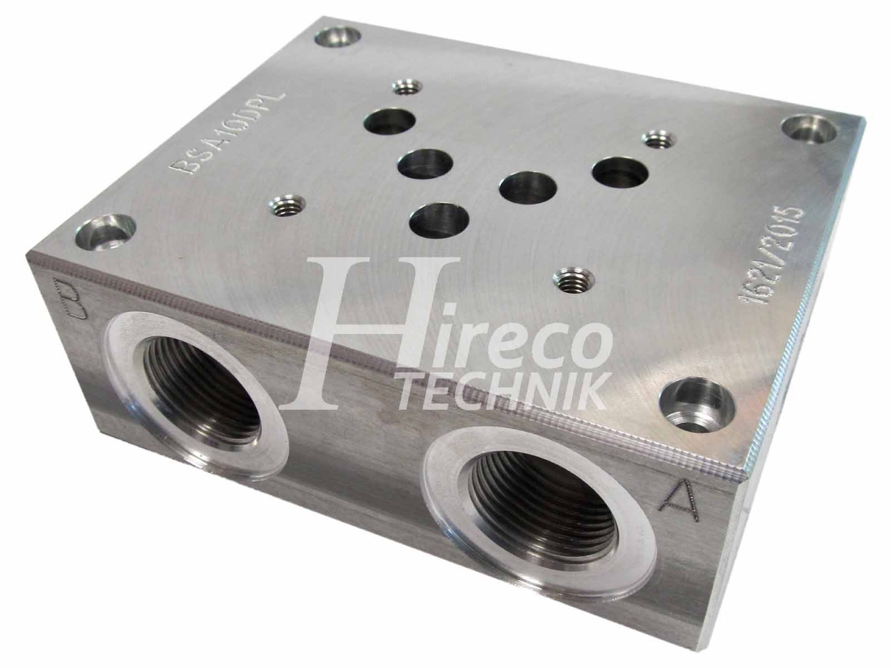 Pripojovacia doska pre rozvádzače Dn10 ISO 4401-03-02-0-05 (CETOP 05) so vstupom v spodnej časti a výstupom z boku. Pripojenie G 3/4".