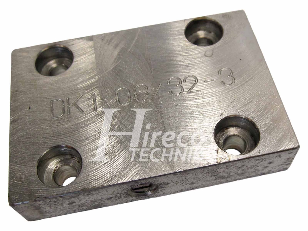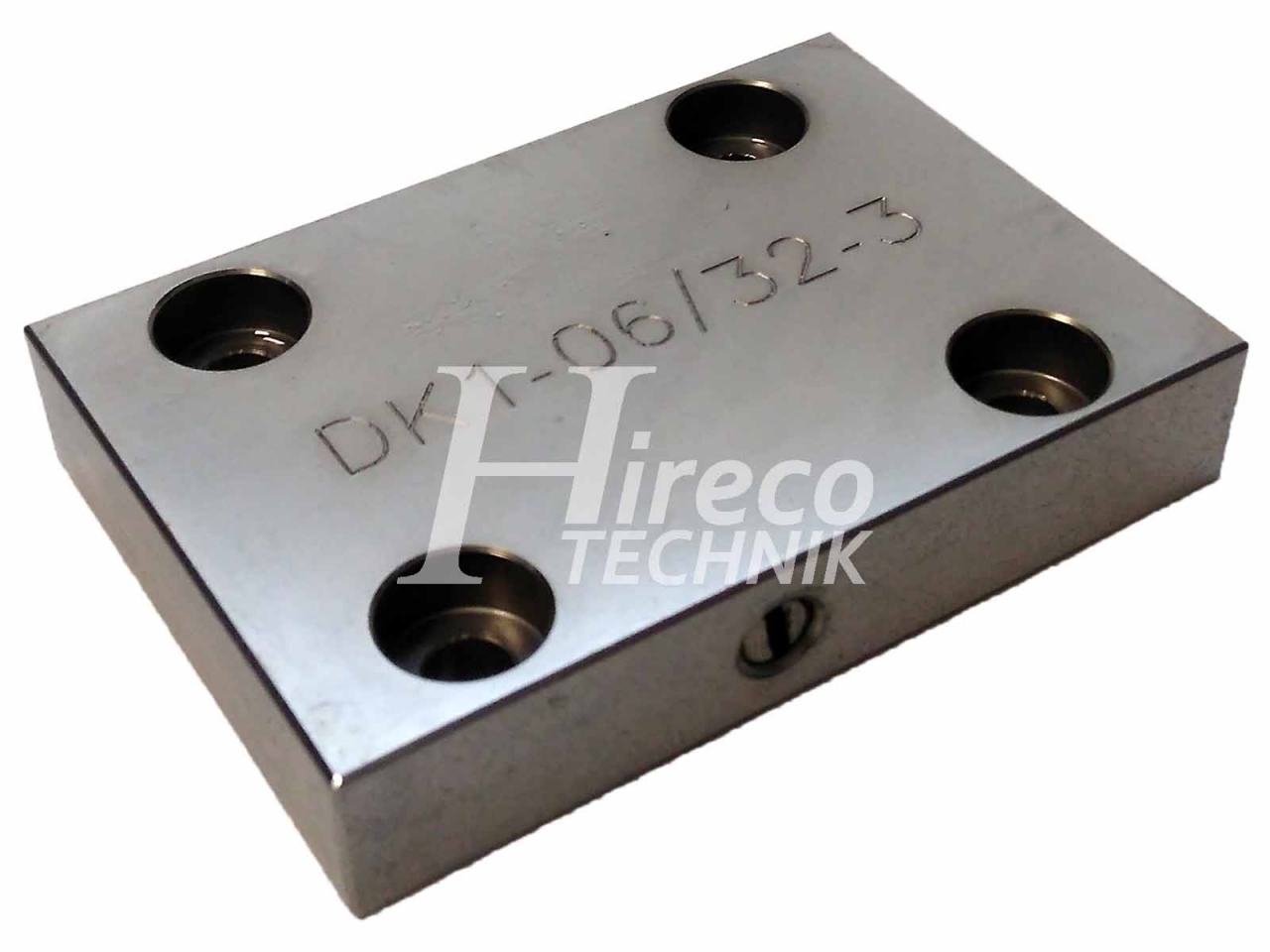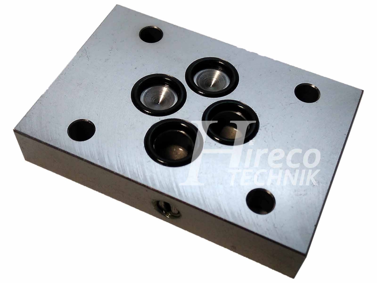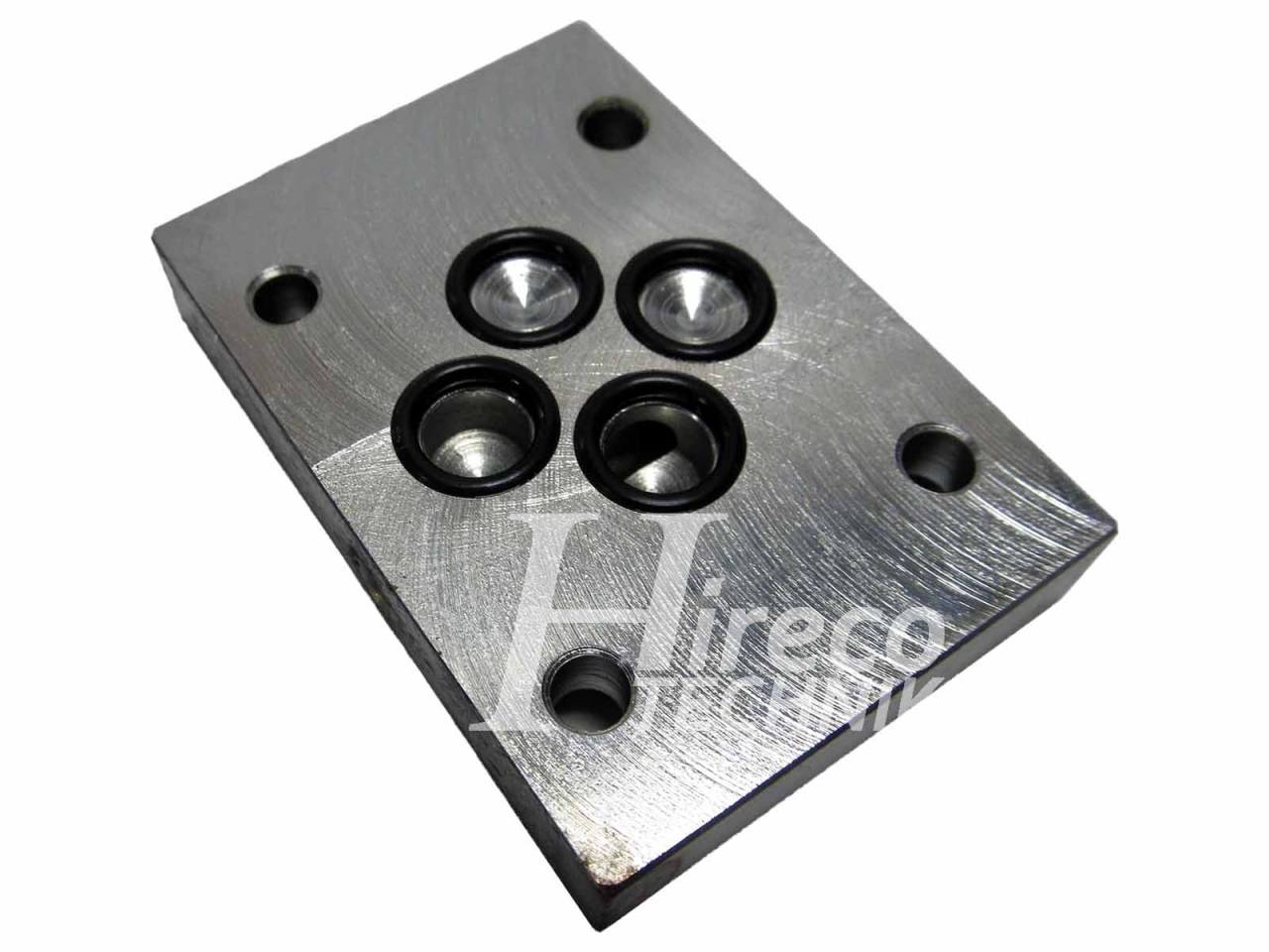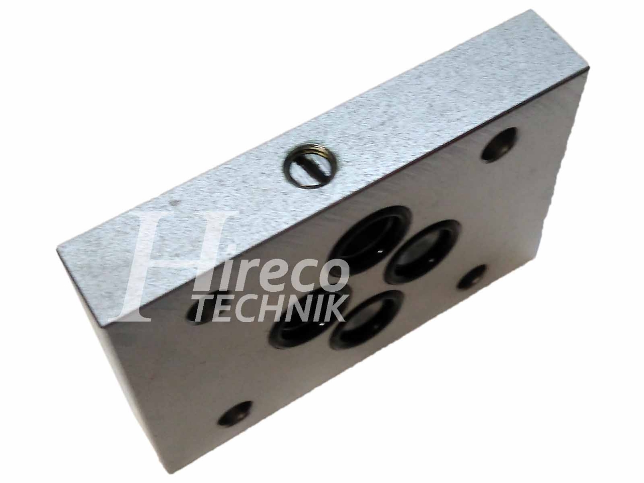 Kracia doska. Montážný obrazec dosky podľa normy ISO 4401, DIN 24340 (CETOP 03), prepojenie kanálovP - A / B, T uzatvorené.