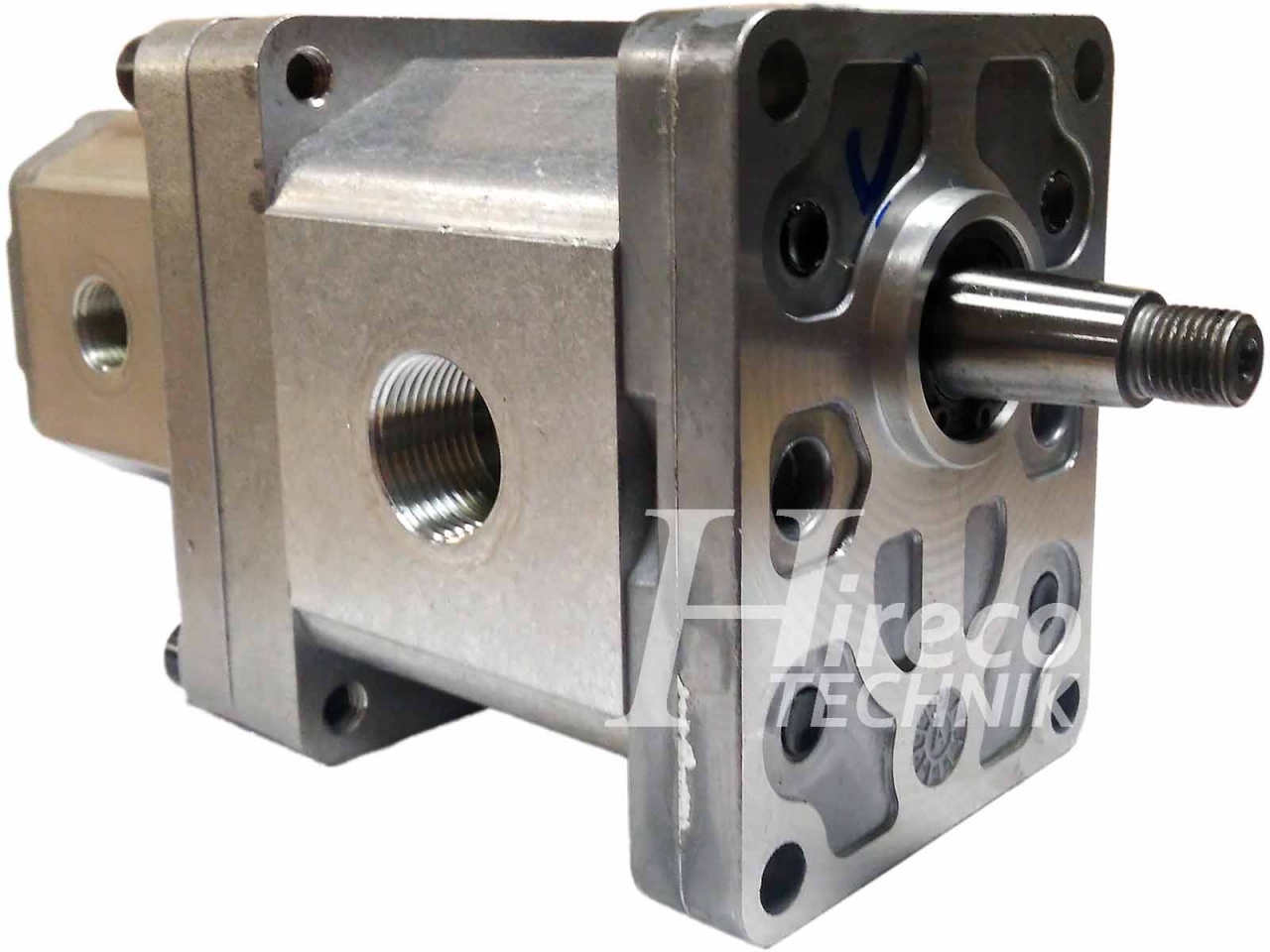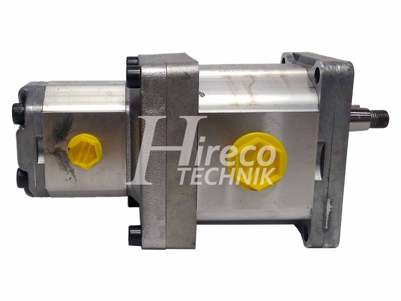 Zubové čerpadlo tandem 2/1, so štandarným pripojením obdĺžnikovou prírubou s kužeľovvým hriadeľom a priamymi pripojovacími portami GAS (BSPP) po stranách telesa.