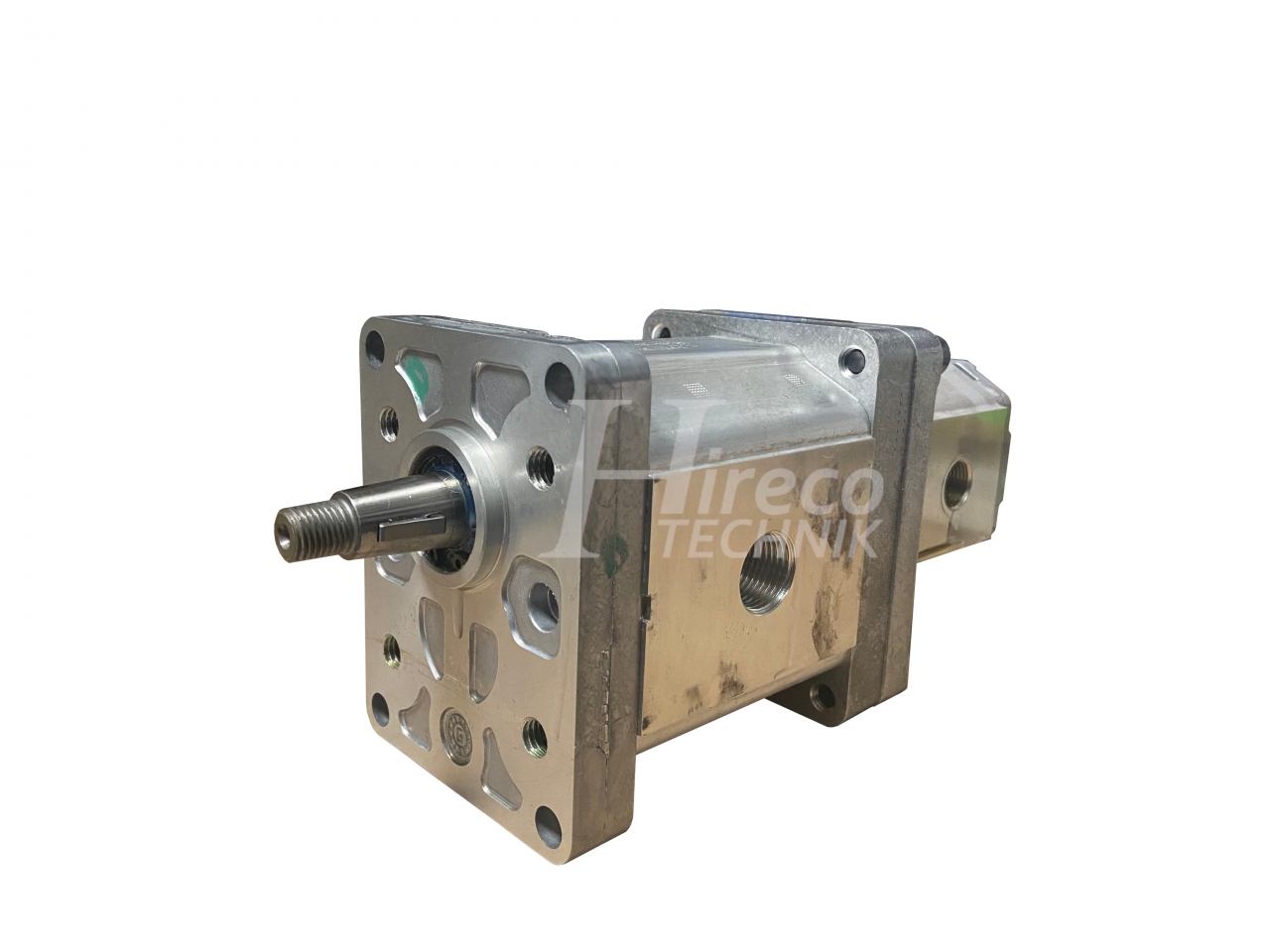 Zubové čerpadlo tandem, so štandarným pripojením obdĺžnikovou prírubou s kužeľovvým hriadeľom a pripojovacími portami + po stranách telesa.
