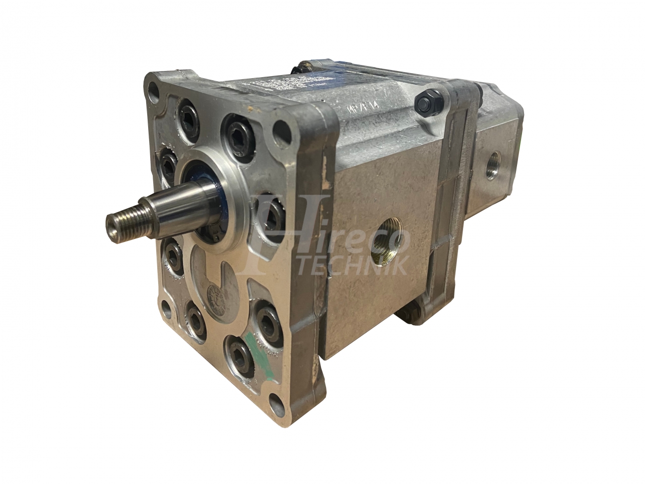 Zubové čerpadlo tandem, so štandarným pripojením obdĺžnikovou prírubou s kužeľovvým hriadeľom a pripojovacími portami + po stranách telesa.