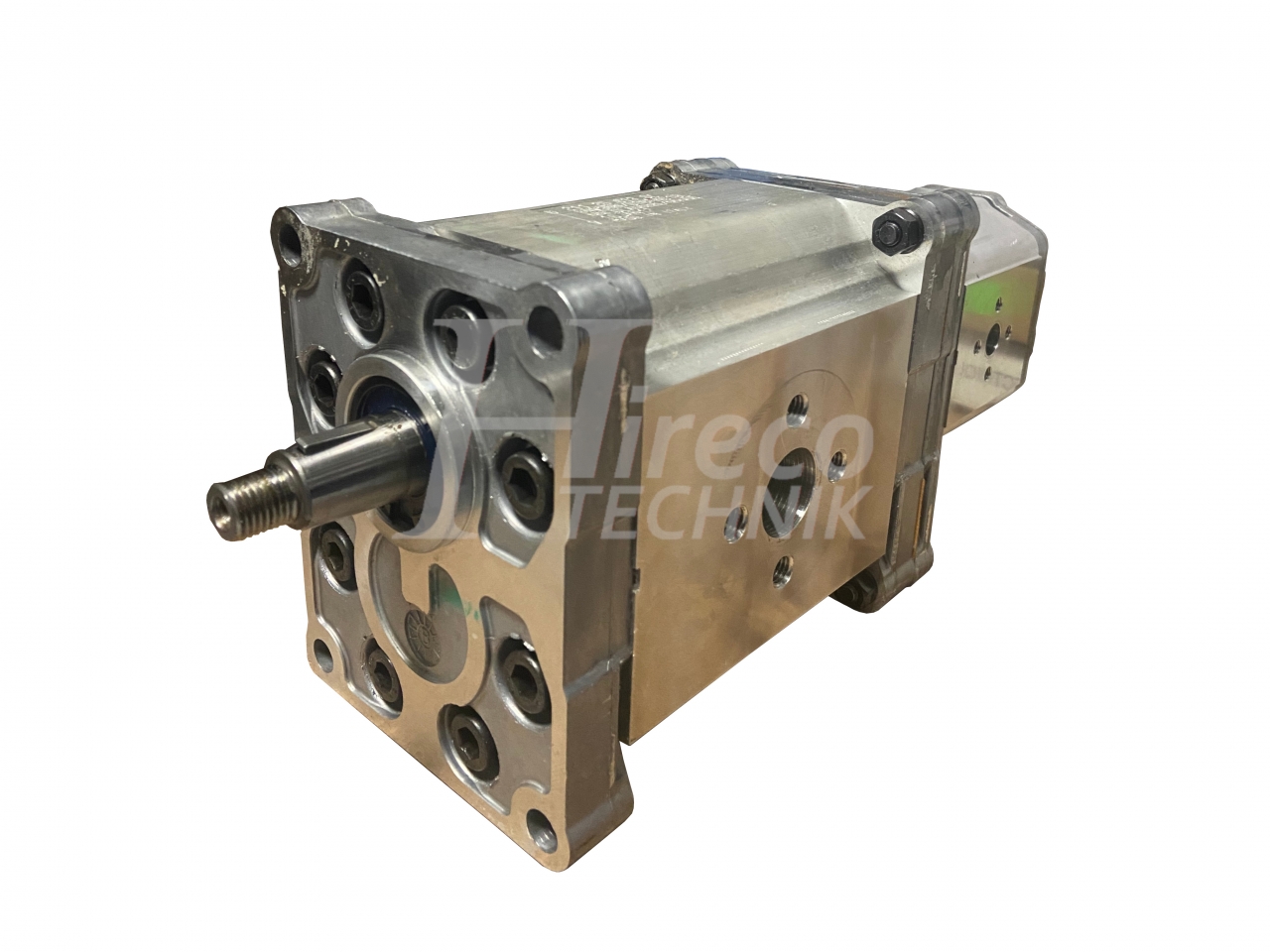 Zubové čerpadlo tandem, so štandarným pripojením obdĺžnikovou prírubou s kužeľovvým hriadeľom a pripojovacími portami + po stranách telesa.
