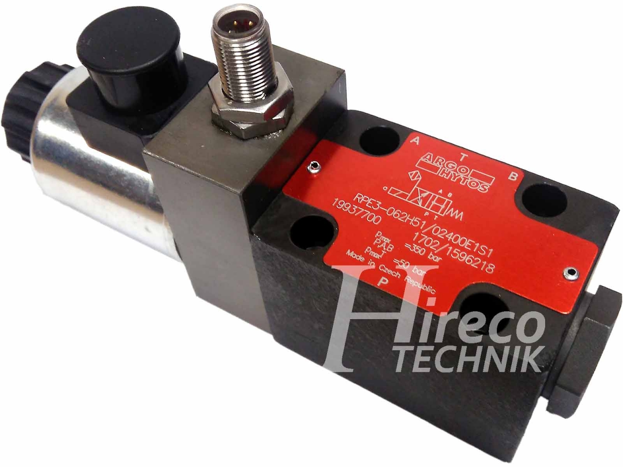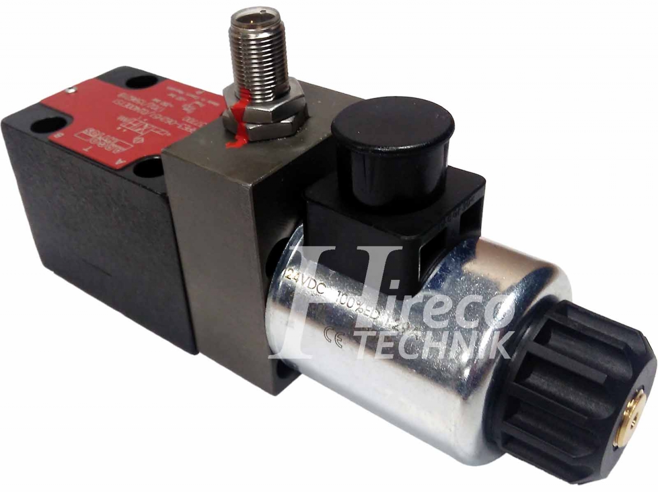 Priamo riadený šupátkový rozvádzač, ovládaný elektromagneticky, s montážnym obrazcom telesa podľa noriem ISO 4401, DIN 24340 (CETOP 03). Snímač so spínacími kontaktmi do 50 bar.
