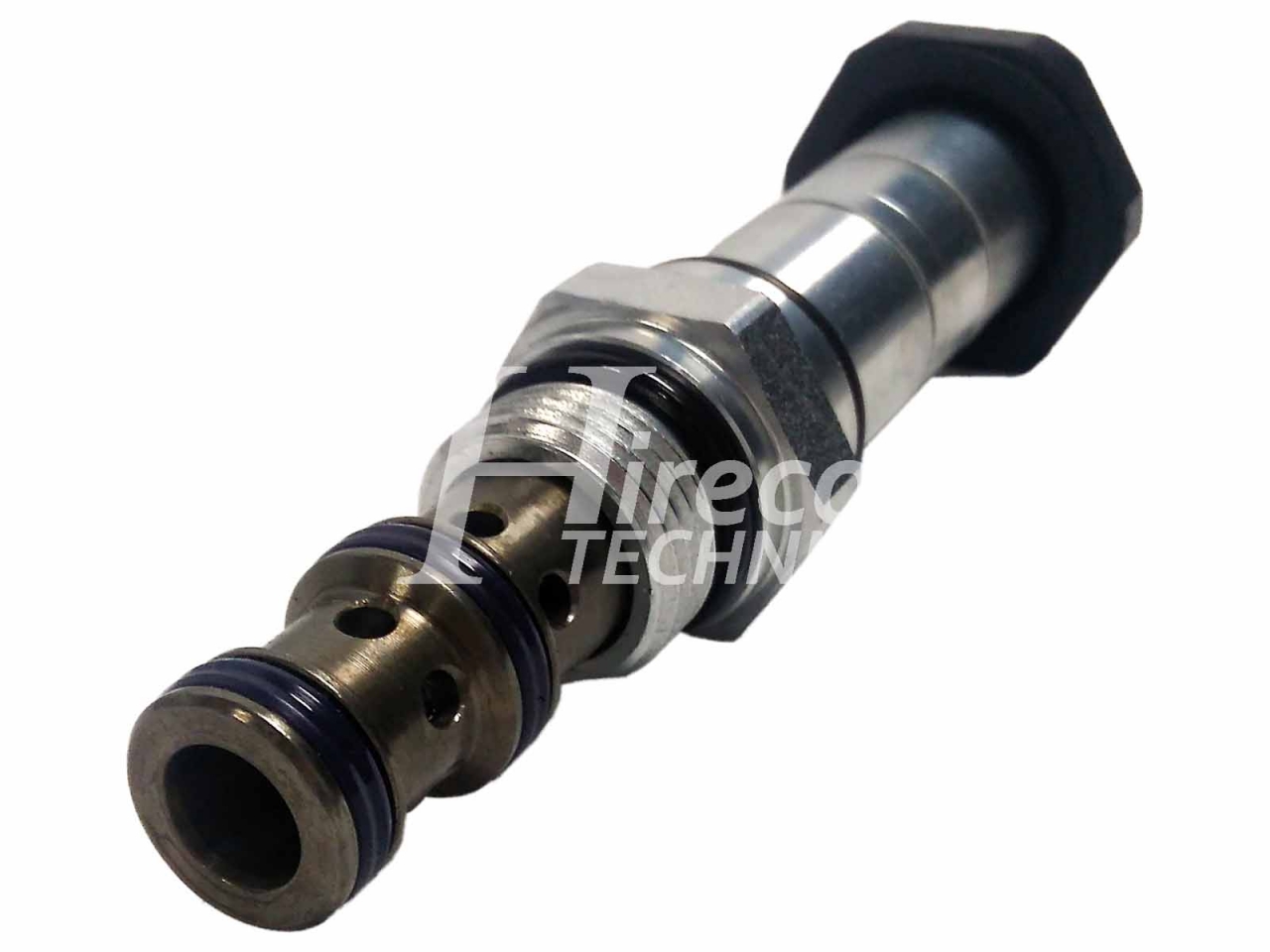 Vstavaný vysokotlakový šupátkový rozvádzač, elektromagneticky ovládaný. Trojcestný obojsmerný ventil s pripojovacím závitom 3/4-16 UNF