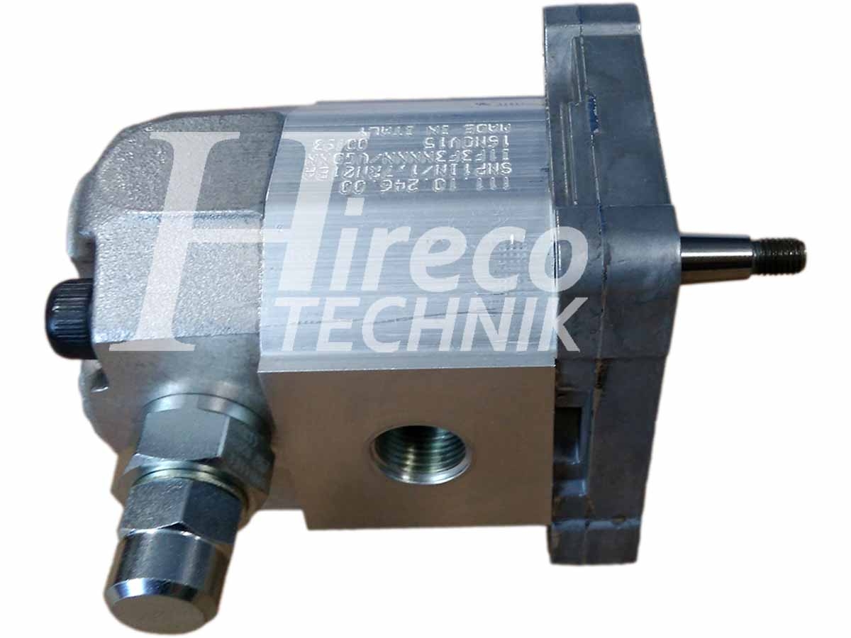 Zubové čerpadlo so štandarným pripojením obdĺžnikovou prírubou s kužeľovvým hriadeľom a priamymi pripojovacími portami GAS (BSPP) po stranách telesa. V zadnom veku je nastaviteľný poistný ventil.