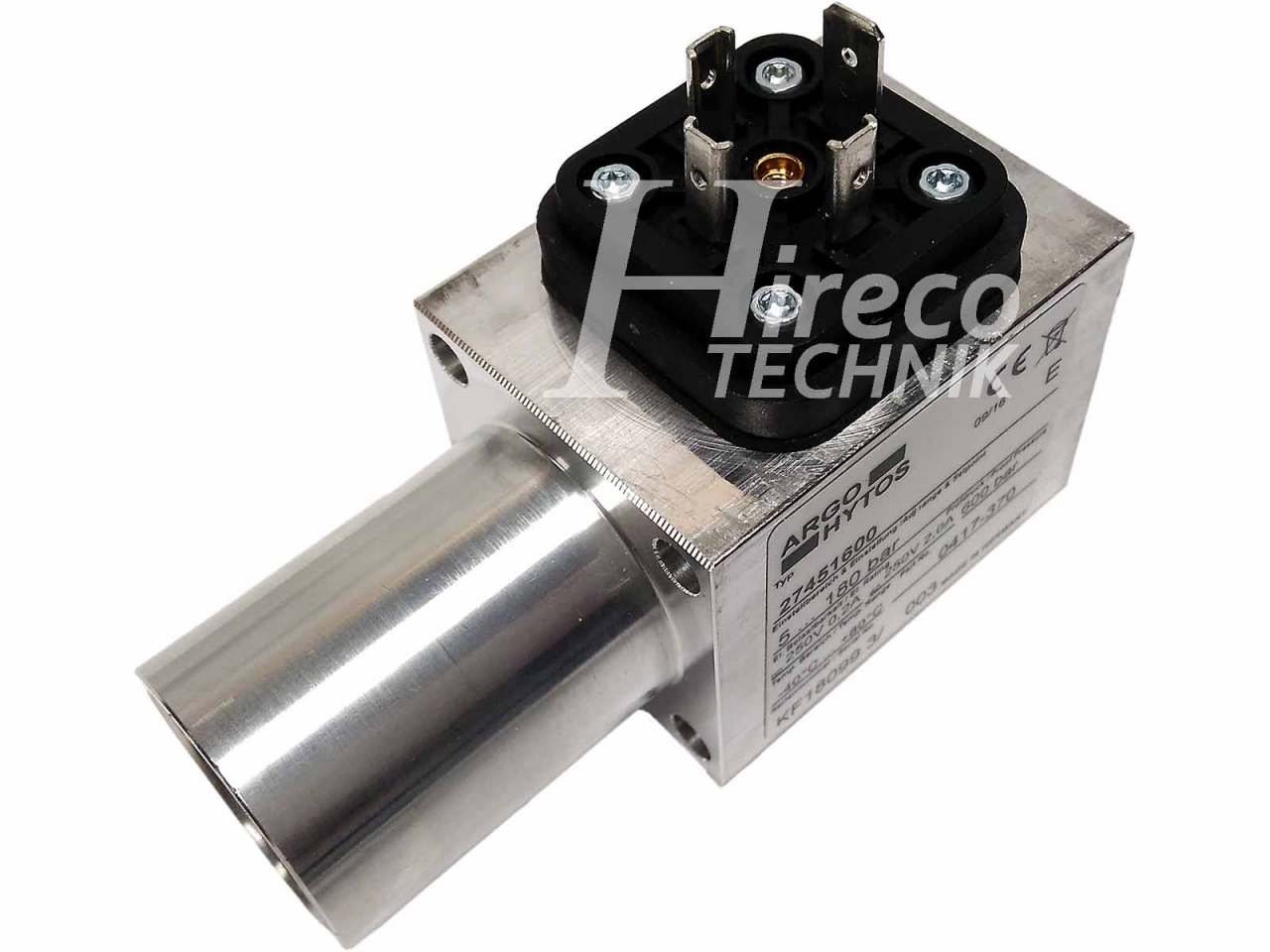 Tlakový spínač určený pre signalizáciu dosiahnutej úrovne tlaku do 350bar. Montáž na blok pomocou dvoch skrutiek.
